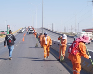 Torreón, Coah; 16 de octubre de 2025.- En un esfuerzo conjunto por mejorar la imagen urbana, la Dirección General de Servicios Públicos desplegó un operativo integral de limpieza y mantenimiento en la carretera a Mieleras, desde el bulevar Revolución hasta el parque industrial Global Park, así como en los bulevares