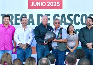 Torreón, Coah; 24 de octubre de 2025.- El alcalde Román Alberto Cepeda González entregó 400 cascos a motociclistas que recibieron capacitación en manejo defensivo y preventivo, con el objetivo de fortalecer la seguridad vial y garantizar la protección de quienes usan estos vehículos como medio de transporte. En el evento lo