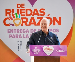 Román Alberto Cepeda González entrega aparatos de movilidad del programa “De Ruedas Corazón”.
