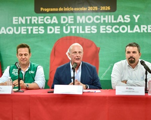 Román Alberto Cepeda González anuncia programa de entrega de mochilas y útiles escolares.