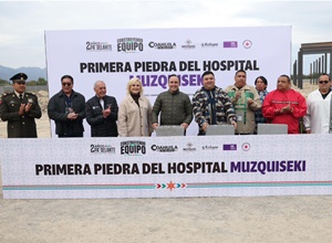 Se fortalecerá la infraestructura de salud en Múzquiz con el Hospital Muzquiseki. Melchor Múzquiz, Coahuila de Zaragoza; a 01 de diciembre de 2025.- En el municipio de Múzquiz, el gobernador Manolo Jiménez Salinas acompañó a Esteban Salazar y a Estavio Elizondo, integrantes de la tribu Kickapoo, en la colocación de la